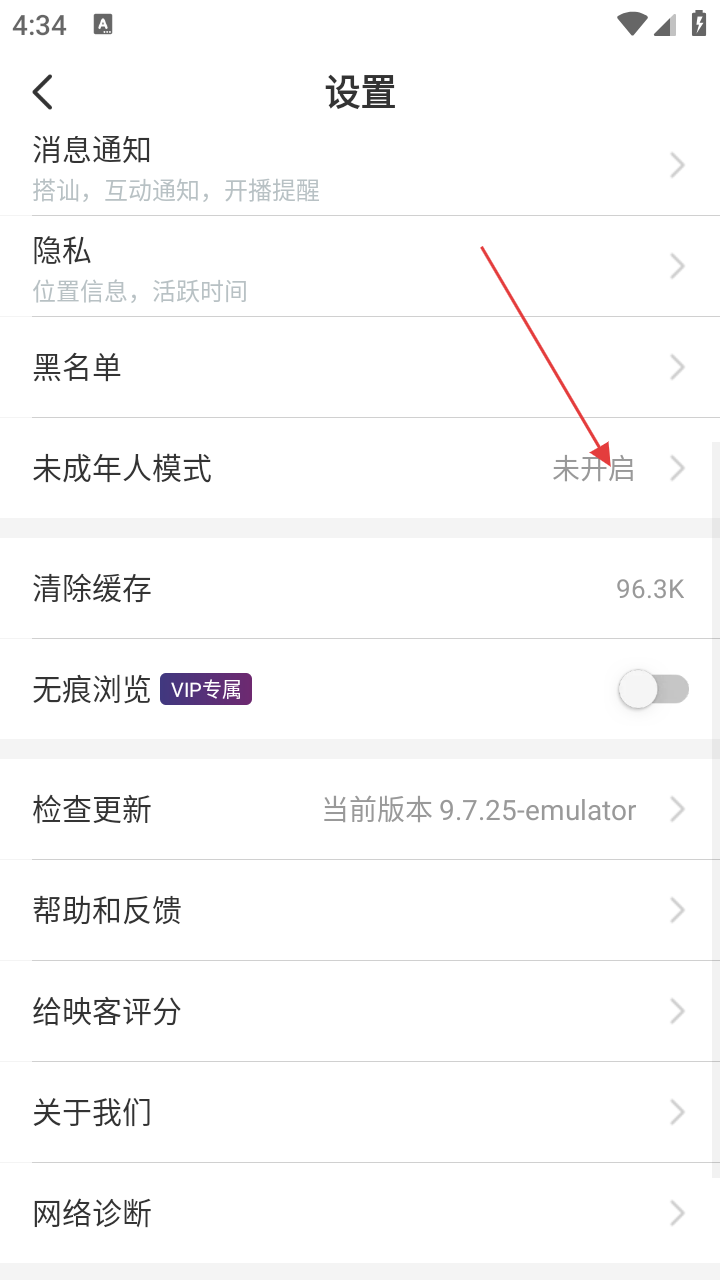 3、在设置页面,若要开启未成年人模式,点击【未成年人模式】选项,进入相关设置页面。