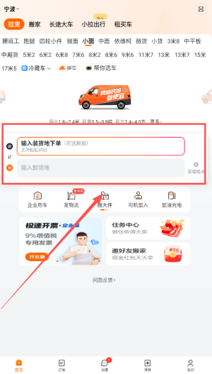 3、选择需求车型,输入起始地点与目的地,系统将自动匹配附近司机并发送订单,轻松完成运输请求。