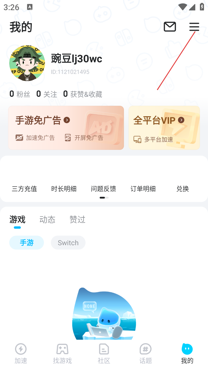 2、进入个人中心后,点击右上角三条横线图标,可进入更多功能页面。
