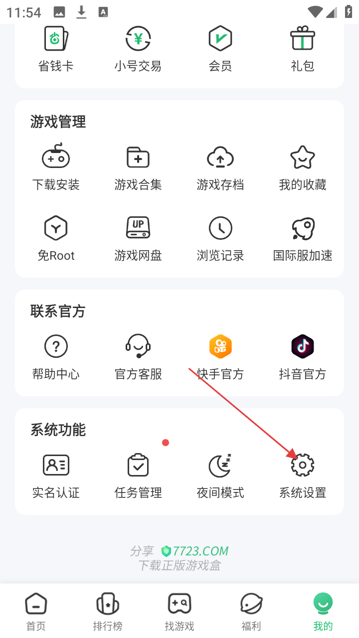 2、进入个人中心后,找到并点击【系统设置】选项,可进入设置页面。