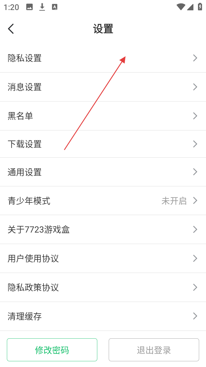 3、在设置页面,点击【隐私设置】选项,可进入隐私设置页面。