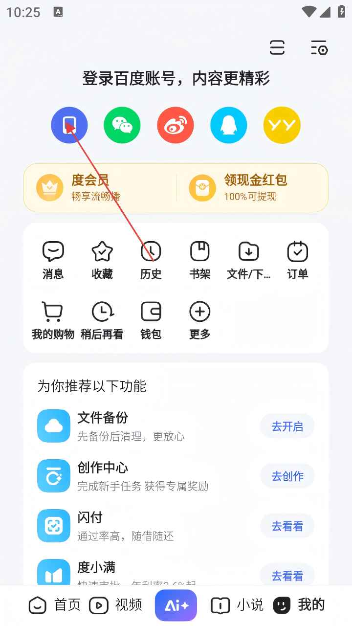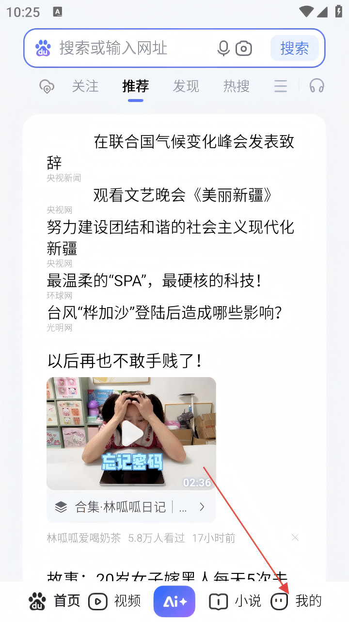 1、打开百度APP,点击右下角【我的】,进入个人页面。