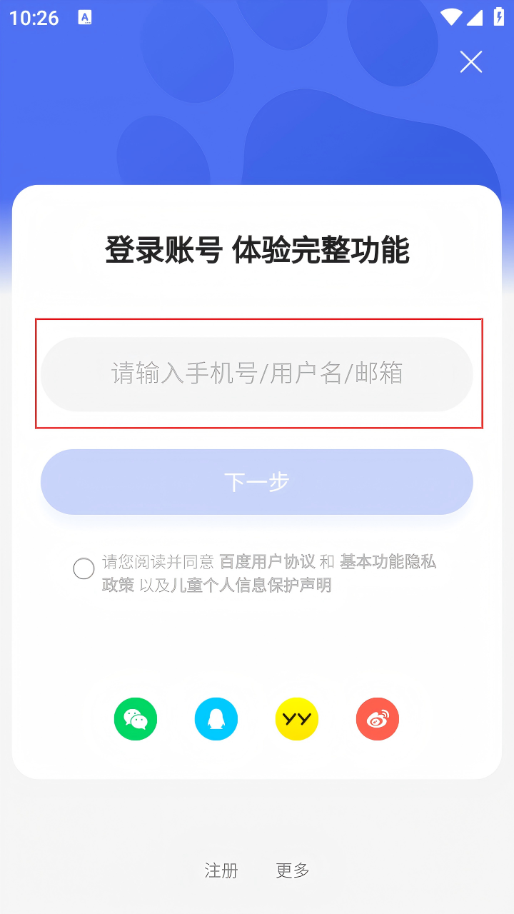 3、在登录界面,输入手机号、用户名或邮箱,准备进行登录操作。