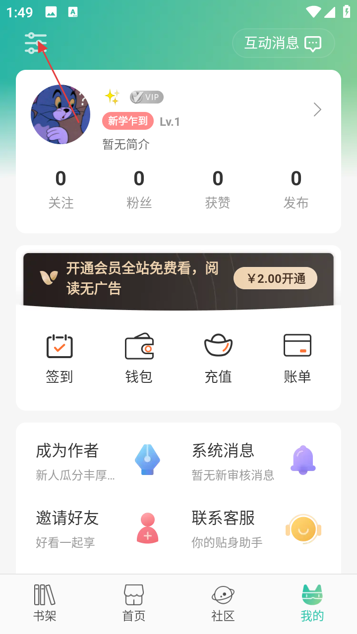 2、在【我的】页面,点击左上角设置图标,可进入设置界面进行相关功能设置。