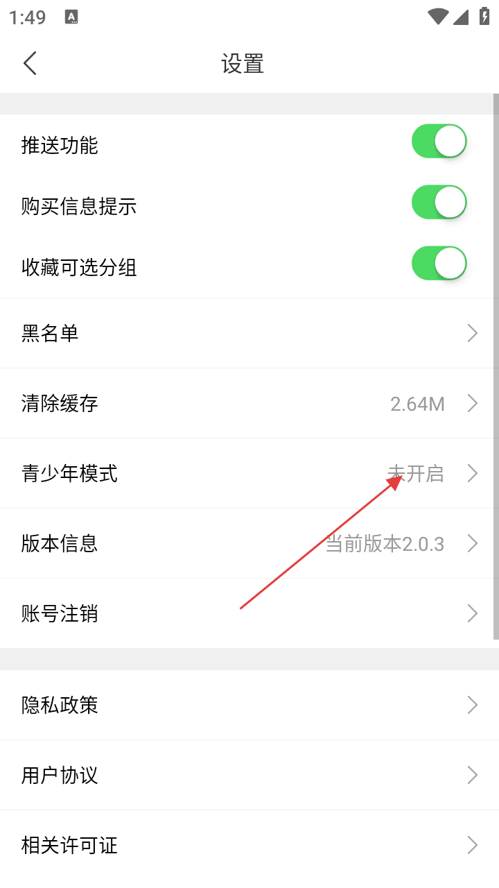 3、在设置界面,可找到【青少年模式】选项,点击进入可查看青少年模式的相关说明并进行开启操作。
