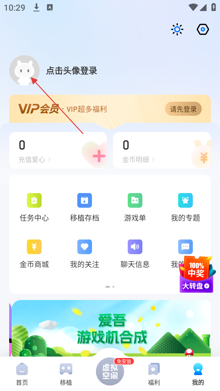 1、在爱吾游戏宝盒首页,点击底部【我的】选项,可进入个人中心页面。