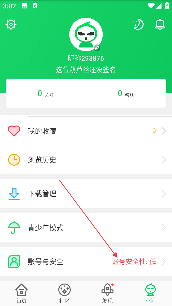 1、打开应用进入首页,点击底部【空间】选项,可进入个人空间页面。
