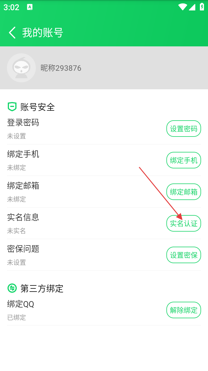 3、在账号安全设置页面,点击【实名认证】选项,可进入实名认证页面。