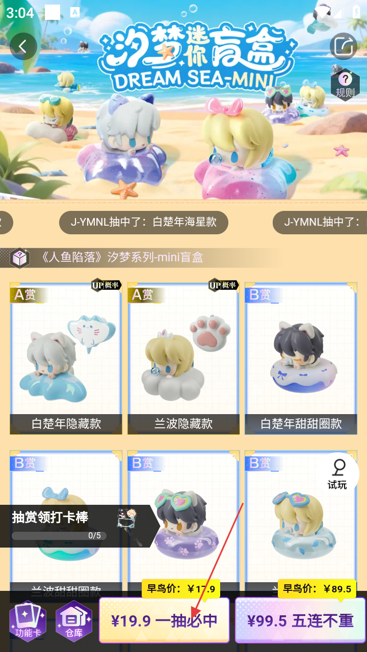 4、在商品详情页,可选择购买方式,如点击【¥19.9一抽必中】参与抽赏。