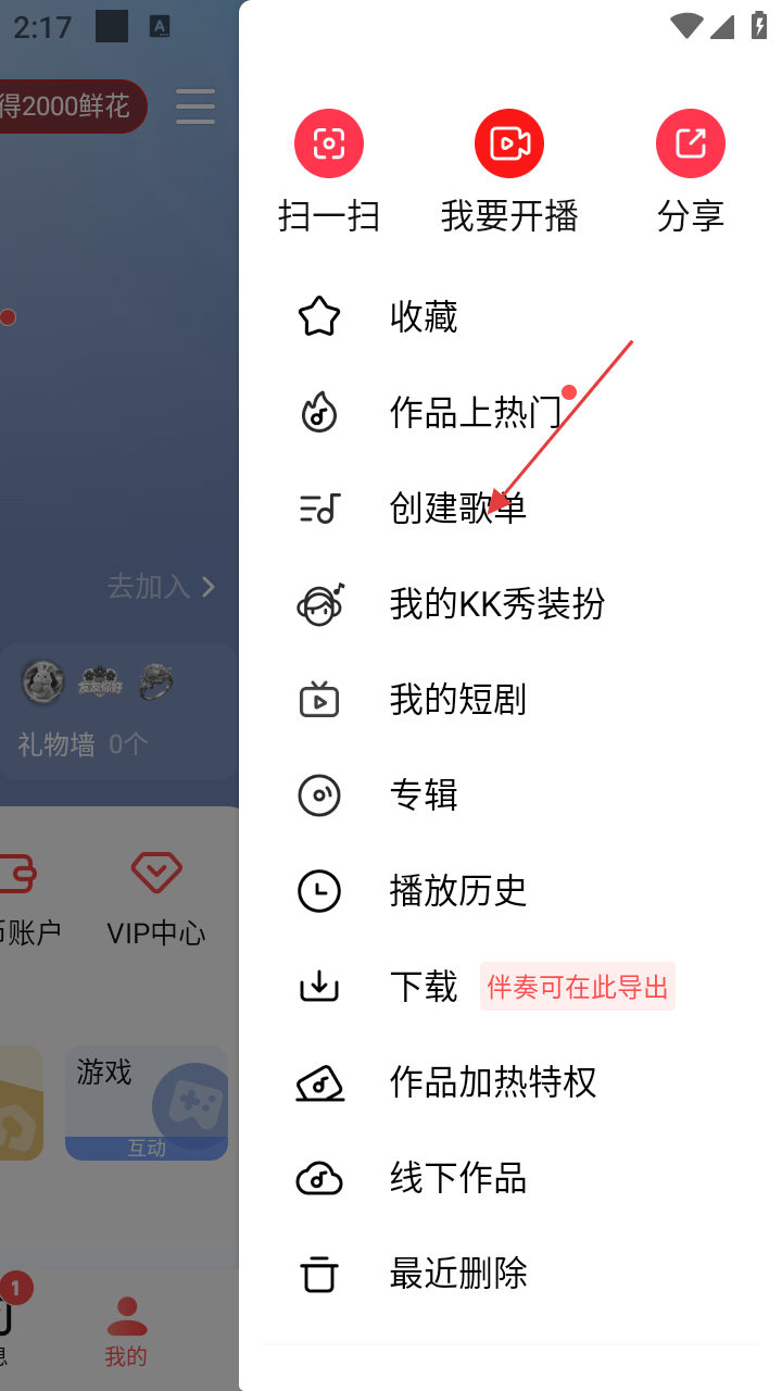 3、展开后,若要创建歌单,点击【创建歌单】选项。