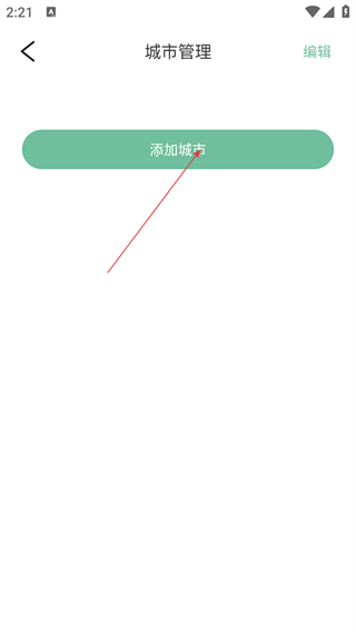 3、在城市管理界面,点击【添加城市】按钮,进入切换城市页面。