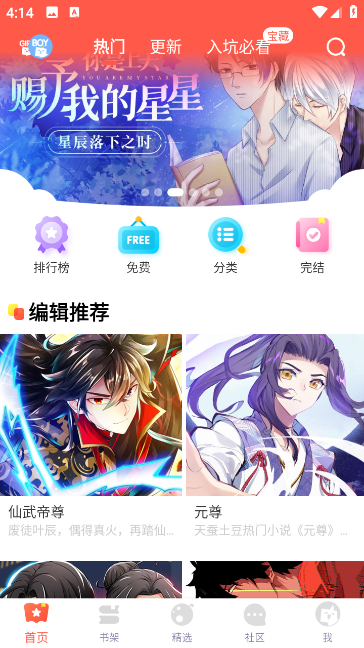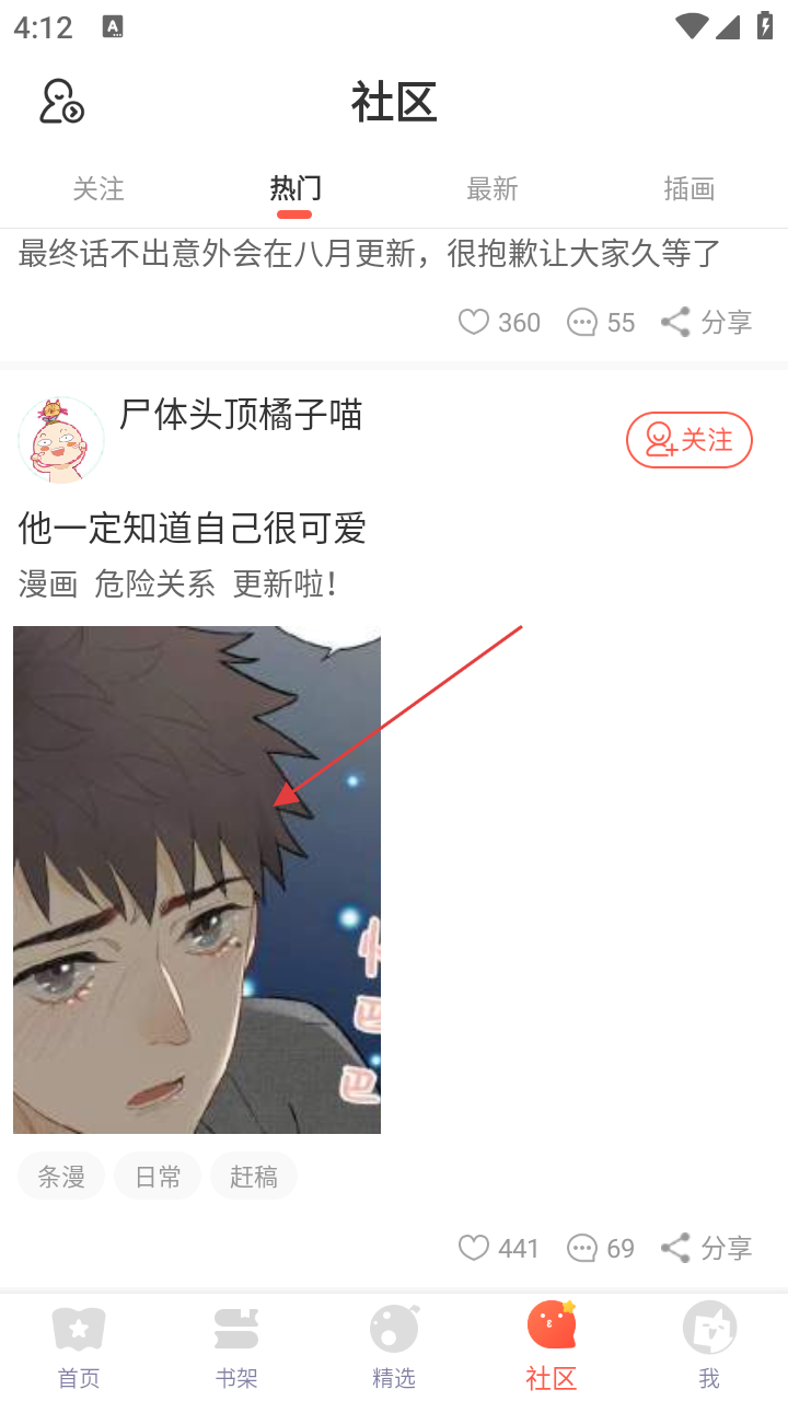 1、在漫漫漫画首页,点击【社区】选项,进入社区页面。