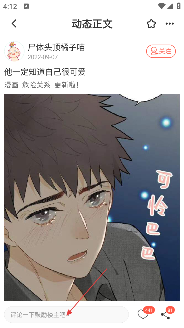 3、在动态正文页,点击下方评论输入框,准备输入评论内容。