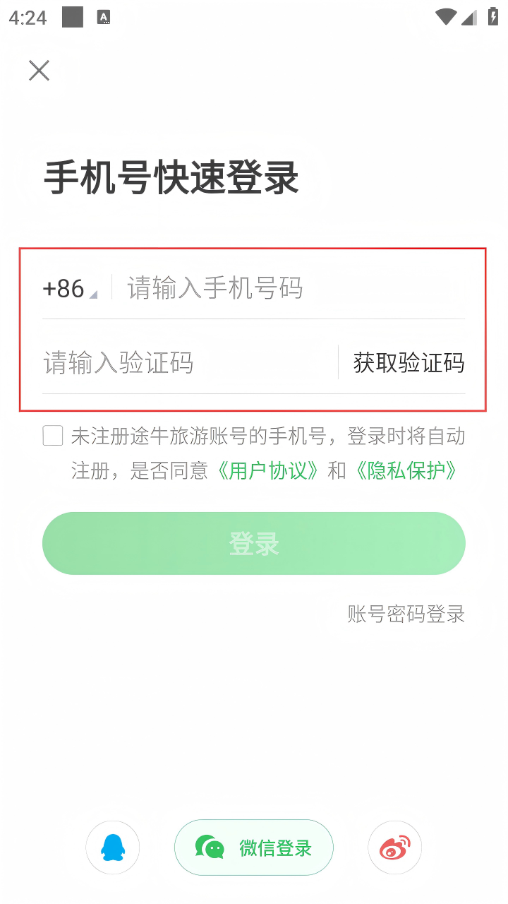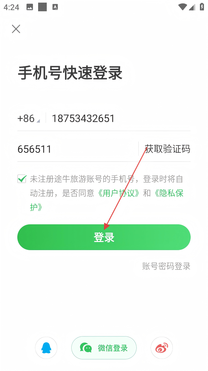 4、将收到的验证码输入后,勾选同意相关协议,最后点击【登录】,即可完成登录操作。