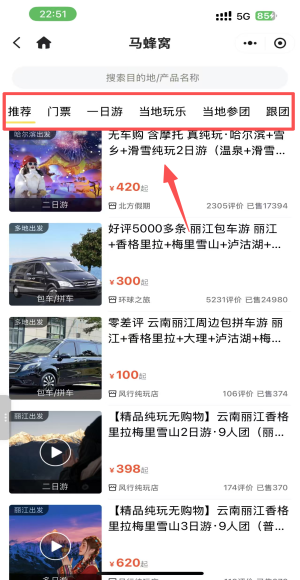 4、在旅游产品列表中,点击感兴趣的产品,查看评价和详情后进行预订。