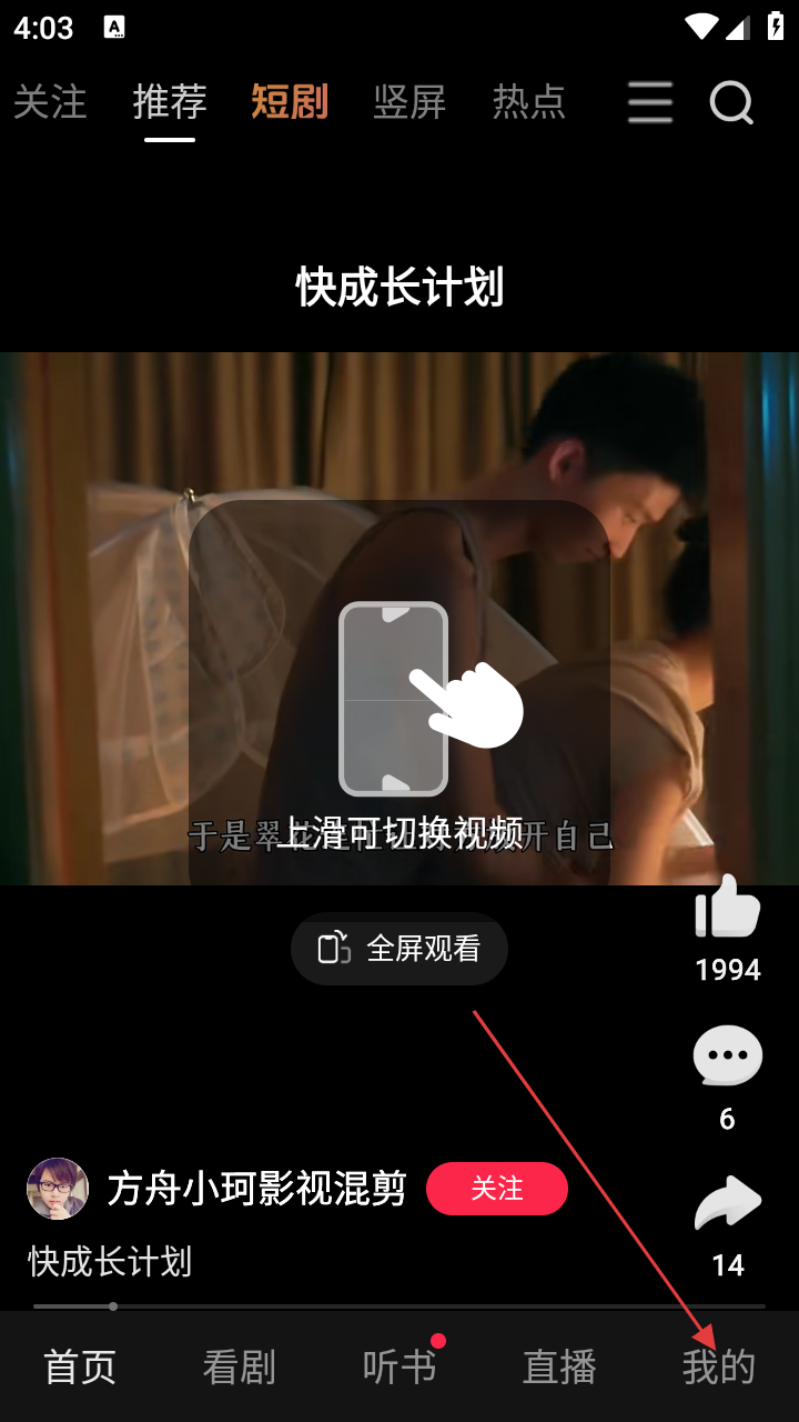 1、在视频播放页面,点击右下角【我的】选项,进入个人中心页面。