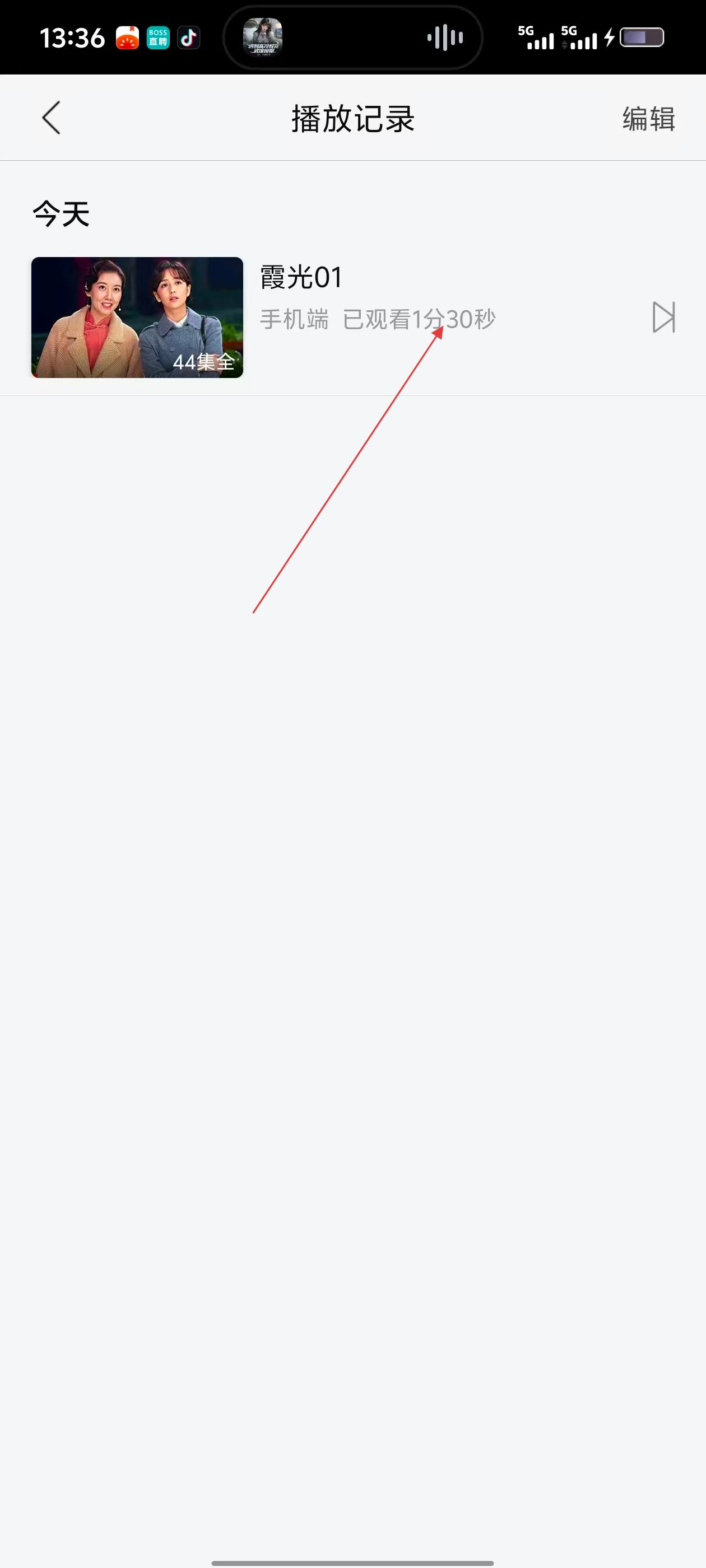 3、在播放记录页面,能看到具体观看记录,如【霞光01】,点击可继续观看对应的内容。
