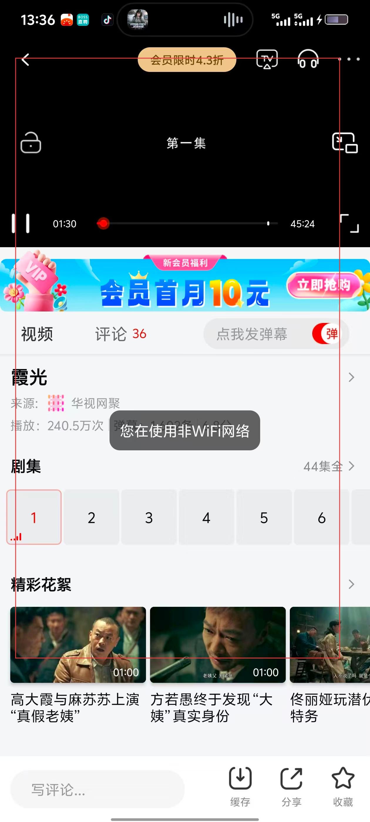 4、进入视频播放页面,可看到剧集、评论等板块,还能进行缓存、分享、收藏等操作,方便继续观看或分享给他人。