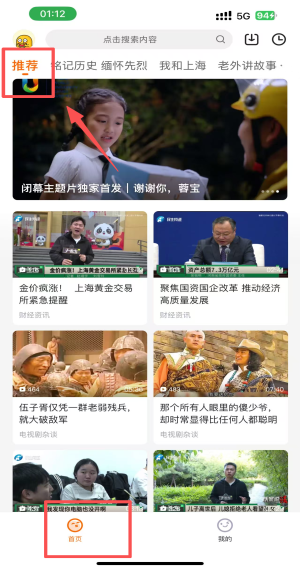 1、在推荐页面,点击“推荐”查看个性化视频内容推荐。