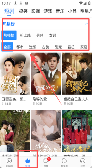 1、点击“短剧”图标,进入短剧分类查看热门短剧。