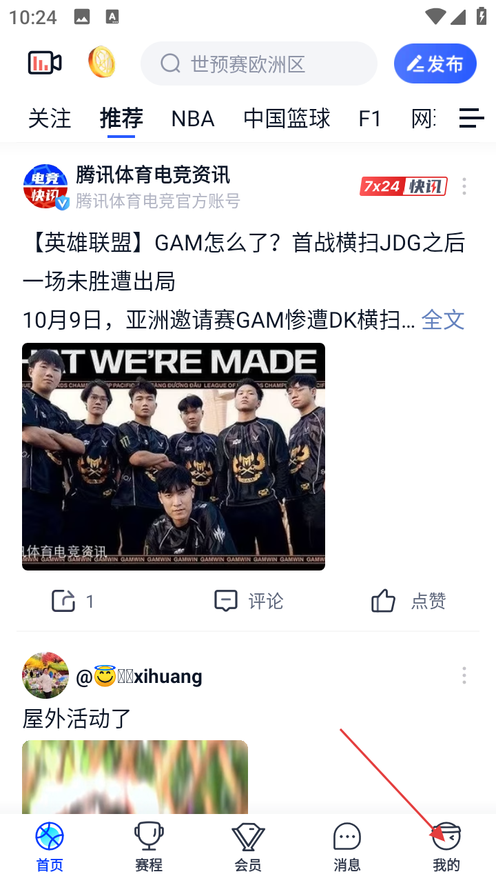 1、在腾讯体育首页,点击右下角【我的】,进入个人页面。