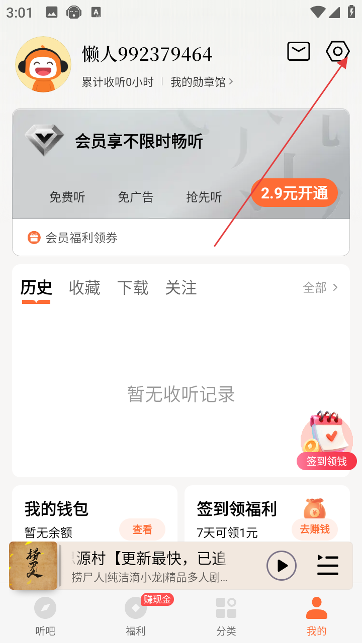 1、在听书APP首页,点击底部【我的】选项,进入个人中心页面。