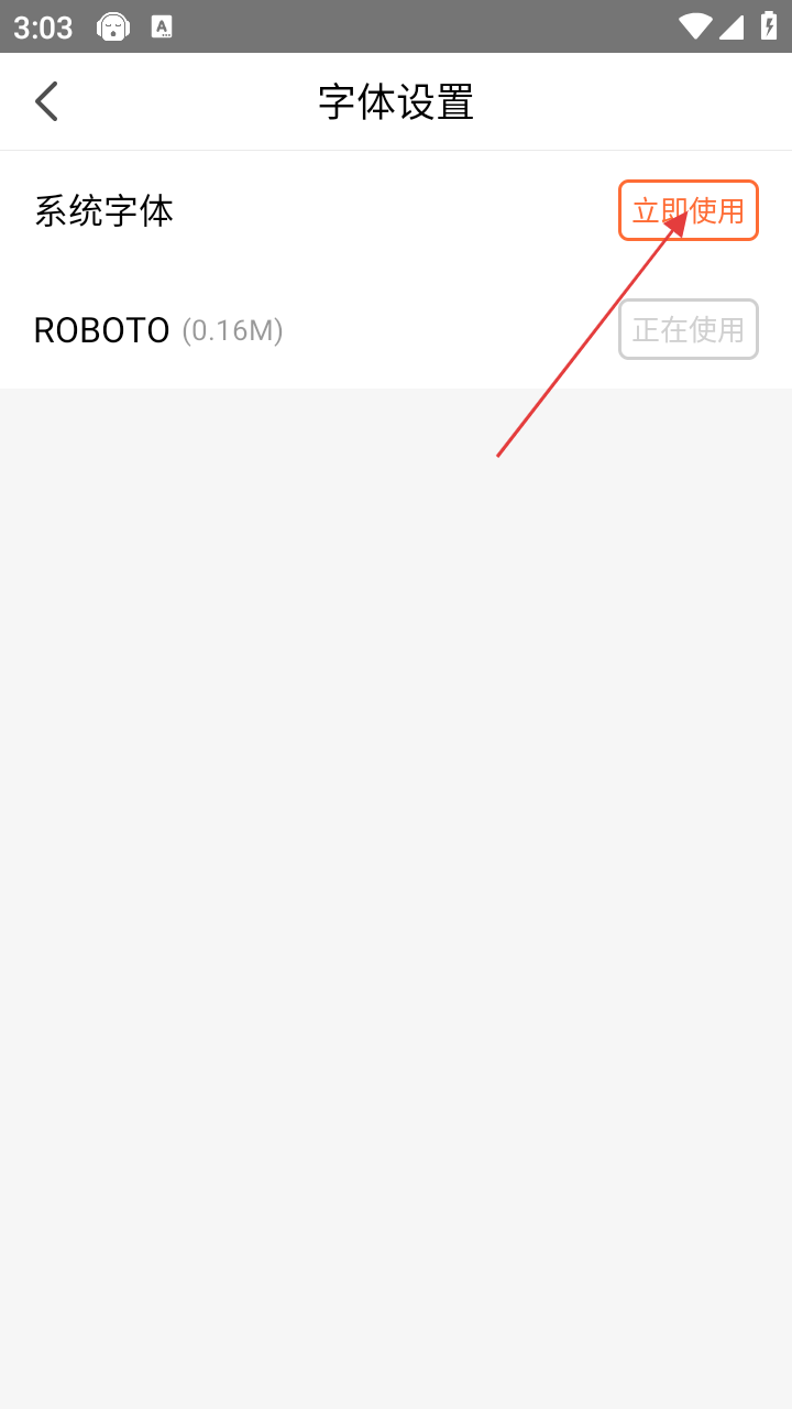 4、在字体设置页面,可选择系统字体或其他字体,点击字体对应的【立即使用】按钮,即可完成字体设置。