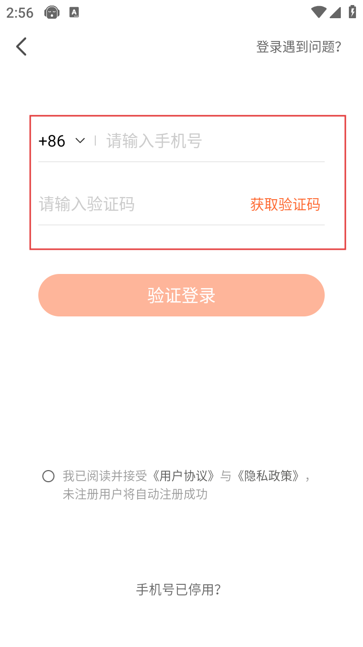 3、在登录方式选择页面,选择【手机号登录】方式,进入手机验证登录页面。