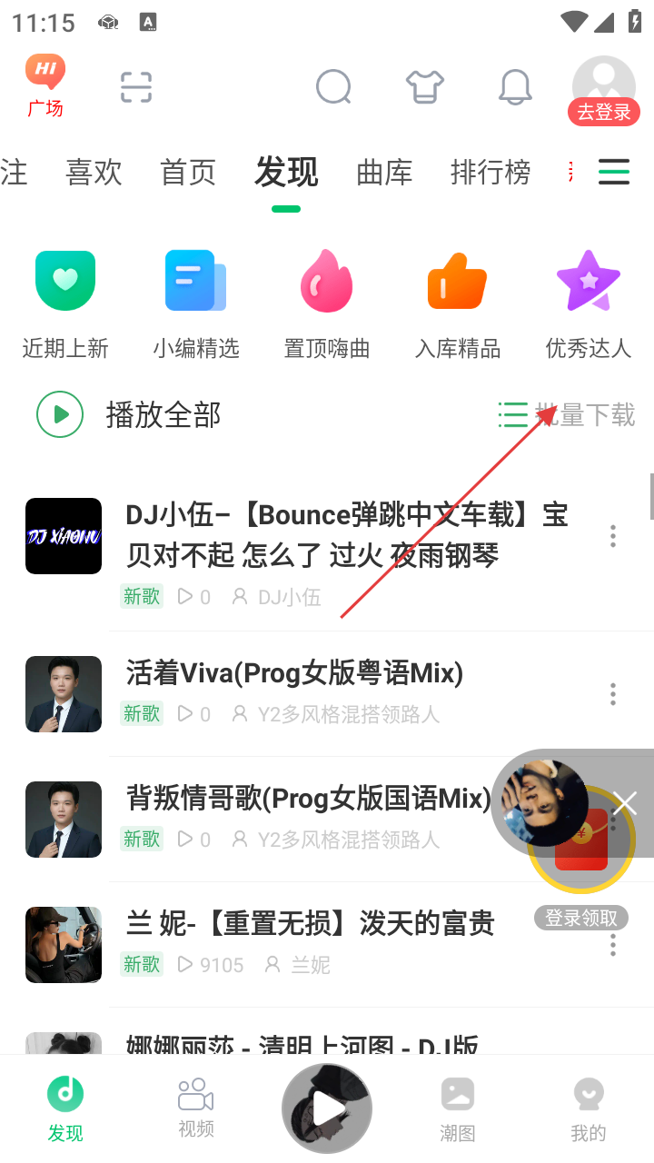 3、在【发现】页面,若有批量下载需求,点击【批量下载】按钮,进行相关操作。
