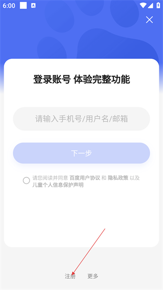 3、登录界面需输入【手机号/用户名/邮箱】,勾选协议后点击【下一步】,也可通过【注册】创建新账号。