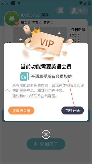 4、若触发会员权限提示,可选择【评价送会员】获取权益,或点击【前往开通】进入会员购买页面解锁功能。
