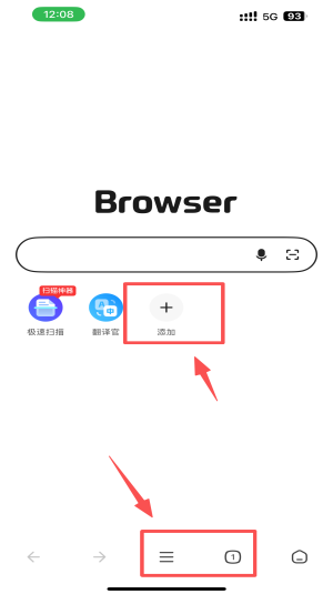 1、打开浏览器应用,点击底部中间的“菜单”按钮,进入菜单选项。