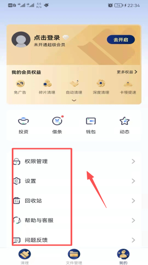 3、在“我的”页面选择“权限管理”以调整应用权限设置。