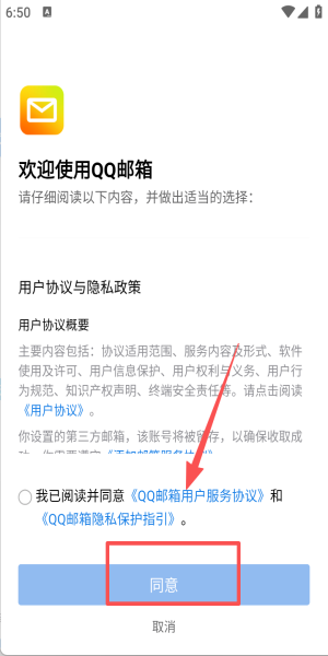 1、阅读协议勾选已阅读,点击“同意”即可进入邮箱账号添加向导。