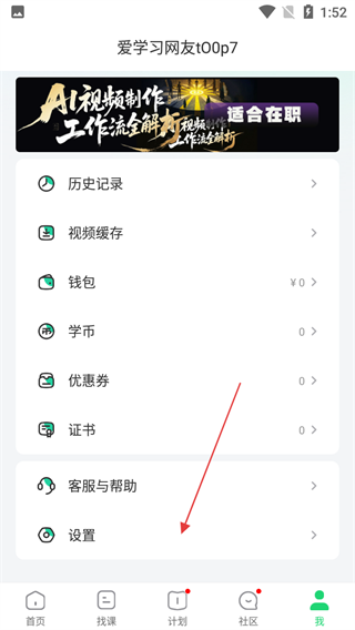 1、在学习类APP首页,点击底部导航栏的【我】,进入个人中心页面。