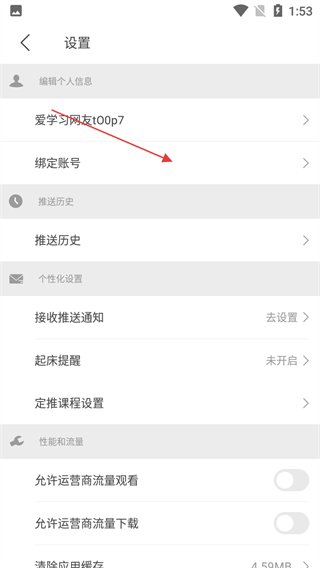 3、在设置页面中,点击【绑定账号】选项,进入账号绑定管理界面。
