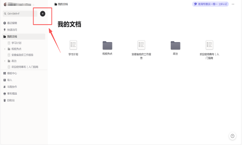 1、点击页面左上角的“我的文档”区域,进入个人文档管理界面。