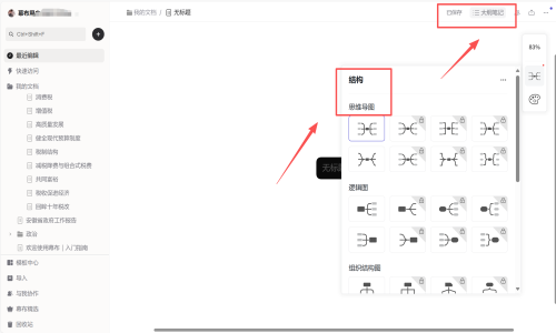 3、在编辑器中,点击“结构”按钮,选择需要的文档结构进行编辑。