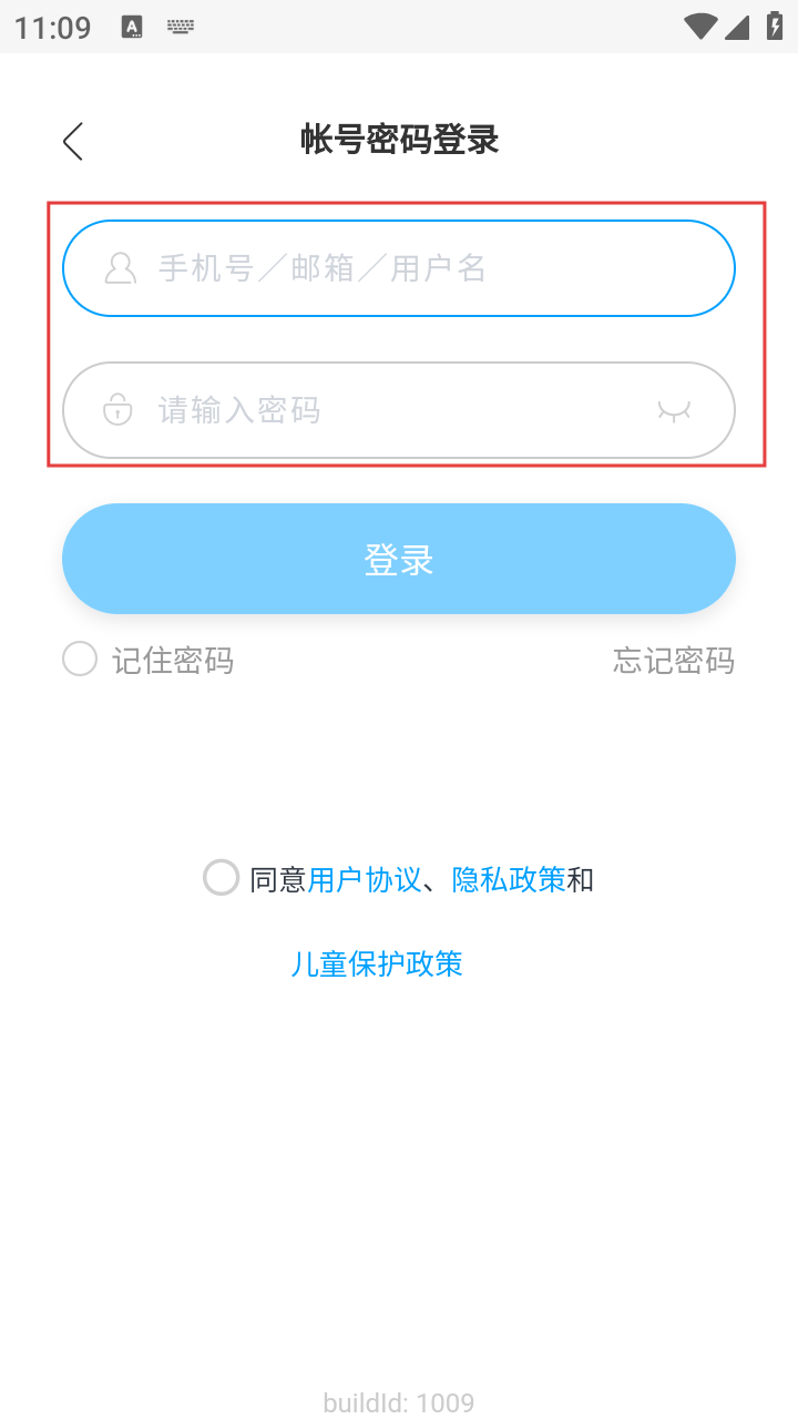 4、在帐号密码登录界面,在【手机号/邮箱/用户名】和【请输入密码】输入框填写信息,点击【登录】按钮,完成登录。
