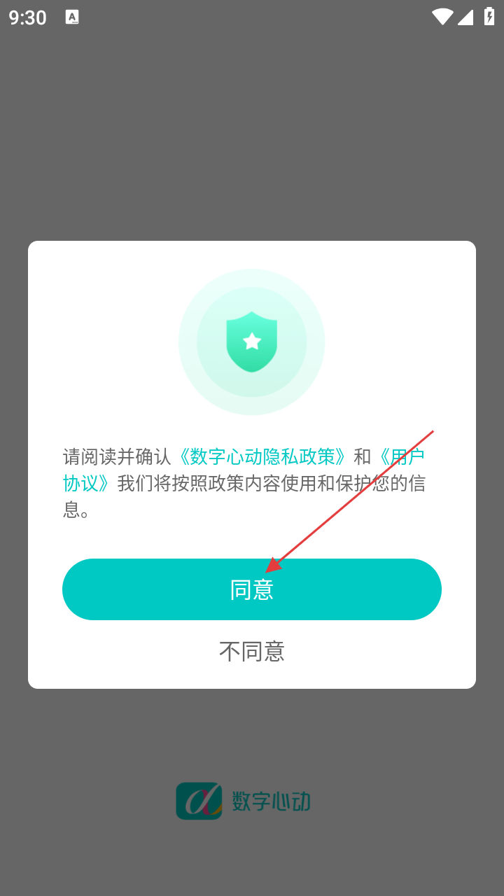 1、在数字心动APP的隐私政策与用户协议确认页面,点击【同意】按钮,进入登录方式选择页面。