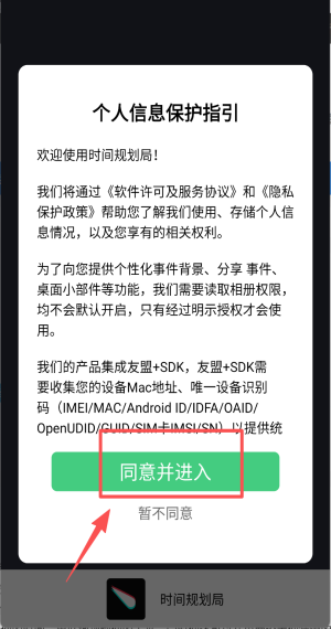 1、启动APP后,点击“同意”按钮以接受软件许可及用户服务协议。