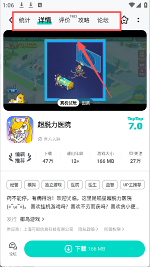 2、在游戏详情页,点击“详情”标签,查看游戏的详细信息。