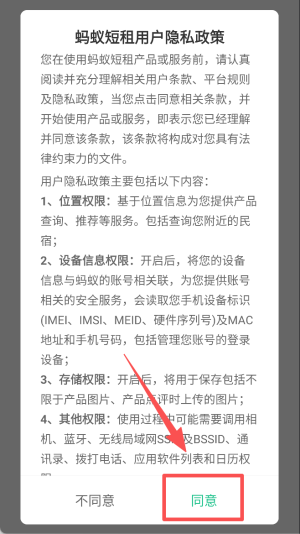 1、同意隐私政策:阅读并点击“同意”按钮,以接受隐私政策并继续。