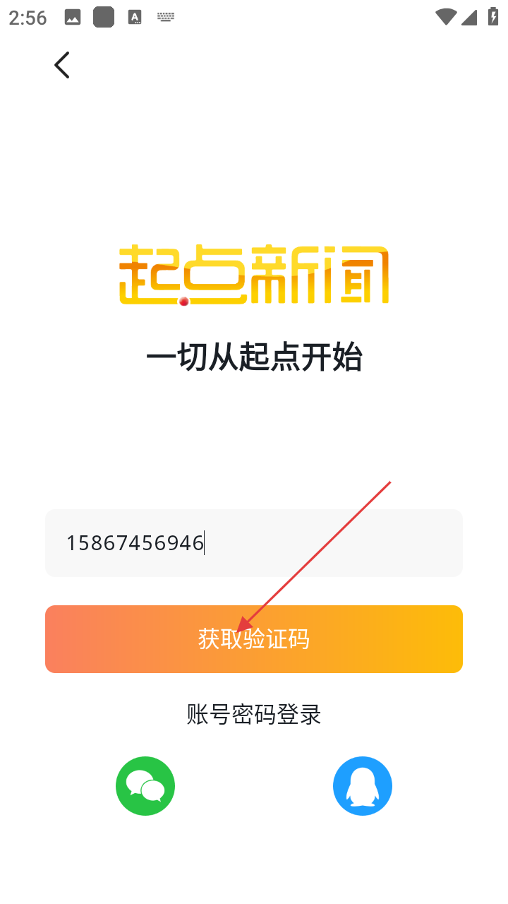4、输入手机号后,点击【获取验证码】,待收到验证码后输入即可完成登录操作,开启更多新闻功能体验。