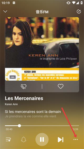 3、在音乐FM播放界面,点击右下角的更多按钮,展开操作选项菜单。