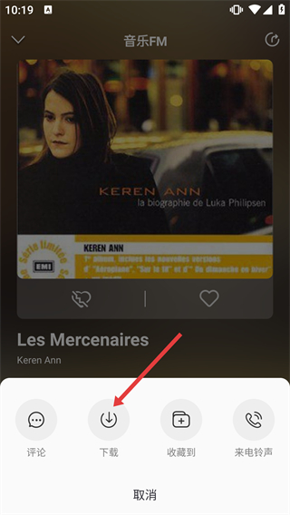 4、在展开的操作选项菜单里,点击【下载】选项,即可下载当前播放的音乐。