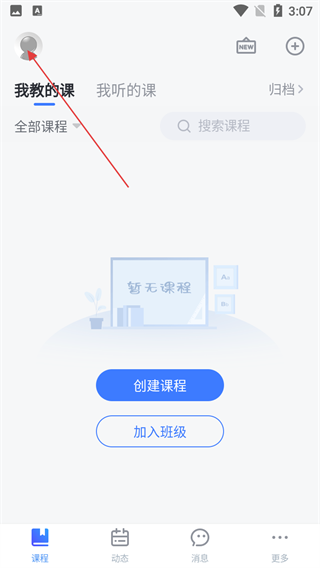 1、进入课程界面后,点击左上角头像,打开个人功能菜单。