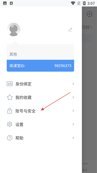 2、在菜单中选择“账号与安全”选项,进入账号安全管理页面。