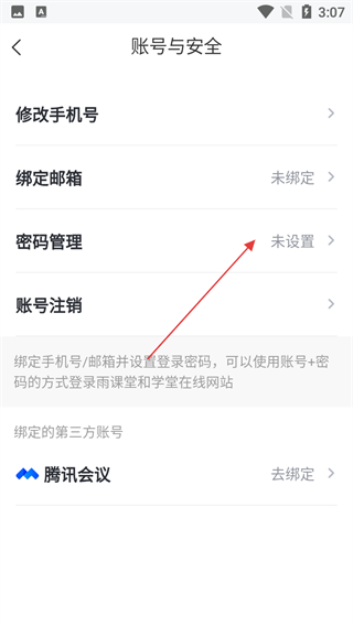 3、在账号与安全页面,点击“密码管理”选项,进入密码设置界面。