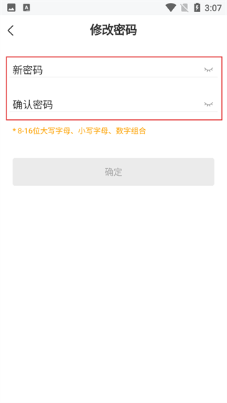 4、按要求输入的新密码,重复输入确认密码后,点击“确定”完成密码设置。